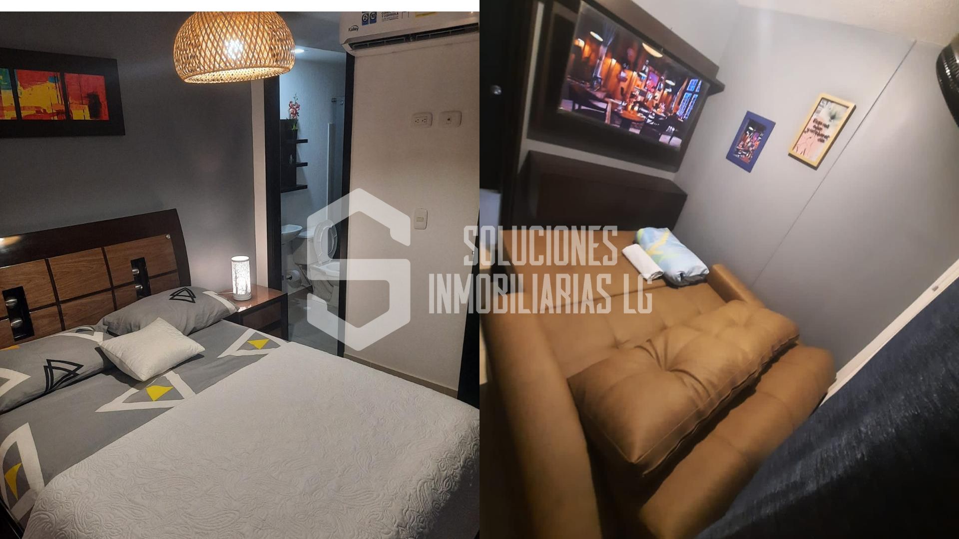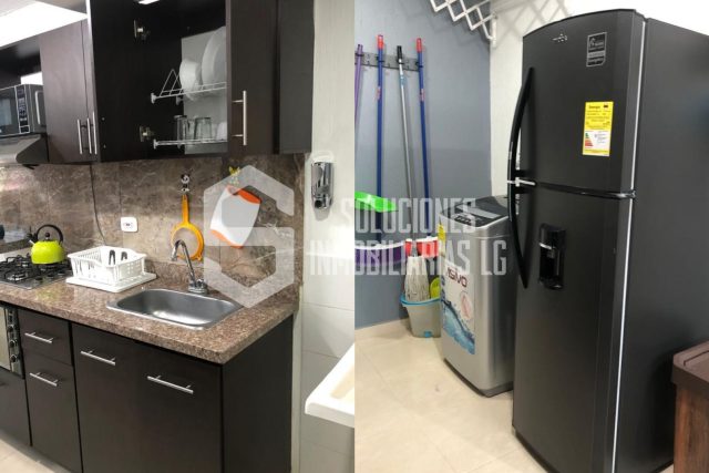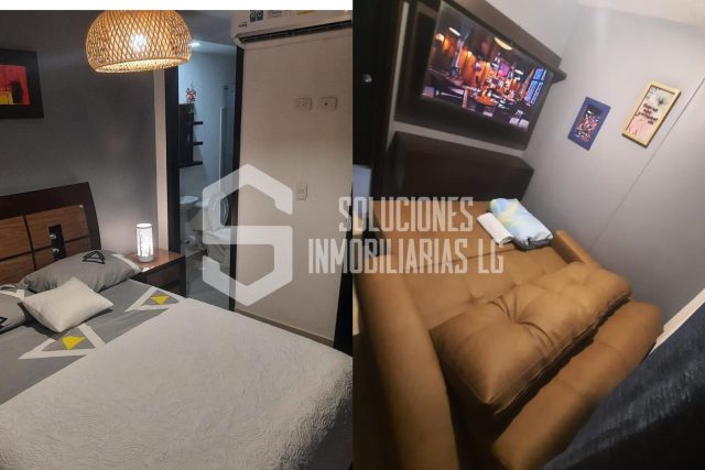 Cuenta con 3 cómodas alcobas con cama, tv y aire en la alcoba principal, cocina integral equipada, sala, comedor, 2 baños y cámaras de seguridad.