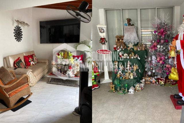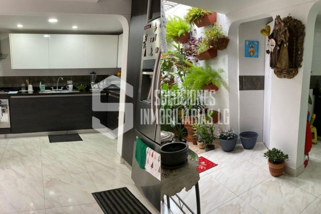 La sala se conecta fluidamente con el comedor formal, proporcionando un espacio perfecto para reuniones familiares o entretenimiento. La cocina integral cuenta con una distribución eficiente que facilita la preparación de comidas.
